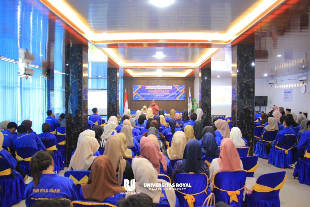 Universitas Royal – Mahasiswa Fakultas Ilmu Komputer Universitas Royal antusias mengikuti Pembekalan Kuliah Kerja Lapangan (KKL) Tahun Akademik 2025/2026 yang dilaksanakan selama dua hari di Aula Kampus 2 Universitas Royal pada 22–23 Juli 2025.
