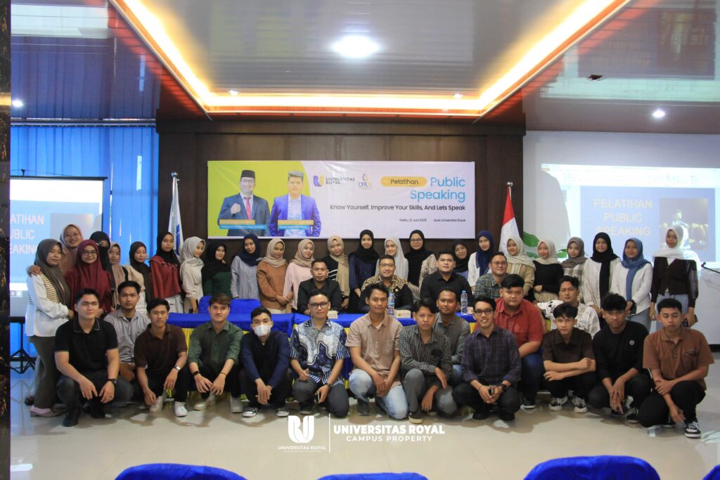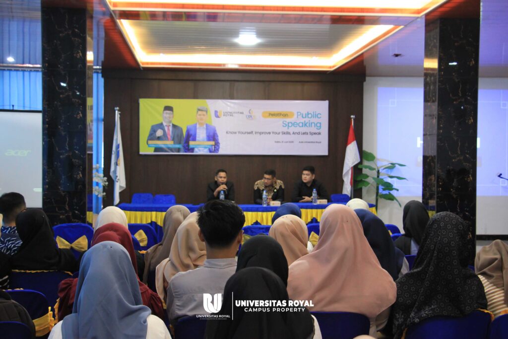 Universitas Royal – Dalam upaya meningkatkan kemampuan komunikasi dan kepercayaan diri mahasiswa, Universitas Royal menyelenggarakan Pelatihan Public Speaking yang diikuti oleh mahasiswa dari berbagai program studi pada 21 Juni 2025.