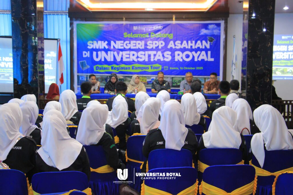 Universitas Royal – Suasana di Kampus 2 Universitas Royal pada Kamis, 16 Oktober 2025 terasa istimewa dengan hadirnya para siswa-siswi SMKN SPP Asahan dalam kegiatan Campus Tour sekaligus Penandatanganan Memorandum of Understanding (MoU) antara kedua institusi.