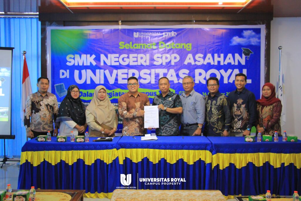 Pada kesempatan yang sama, dilakukan pula penandatanganan MoU antara Universitas Royal dan SMKN SPP Asahan, yang menandai terjalinnya kerja sama strategis dalam bidang pengembangan pendidikan, pelatihan, serta peningkatan kompetensi siswa dan guru.